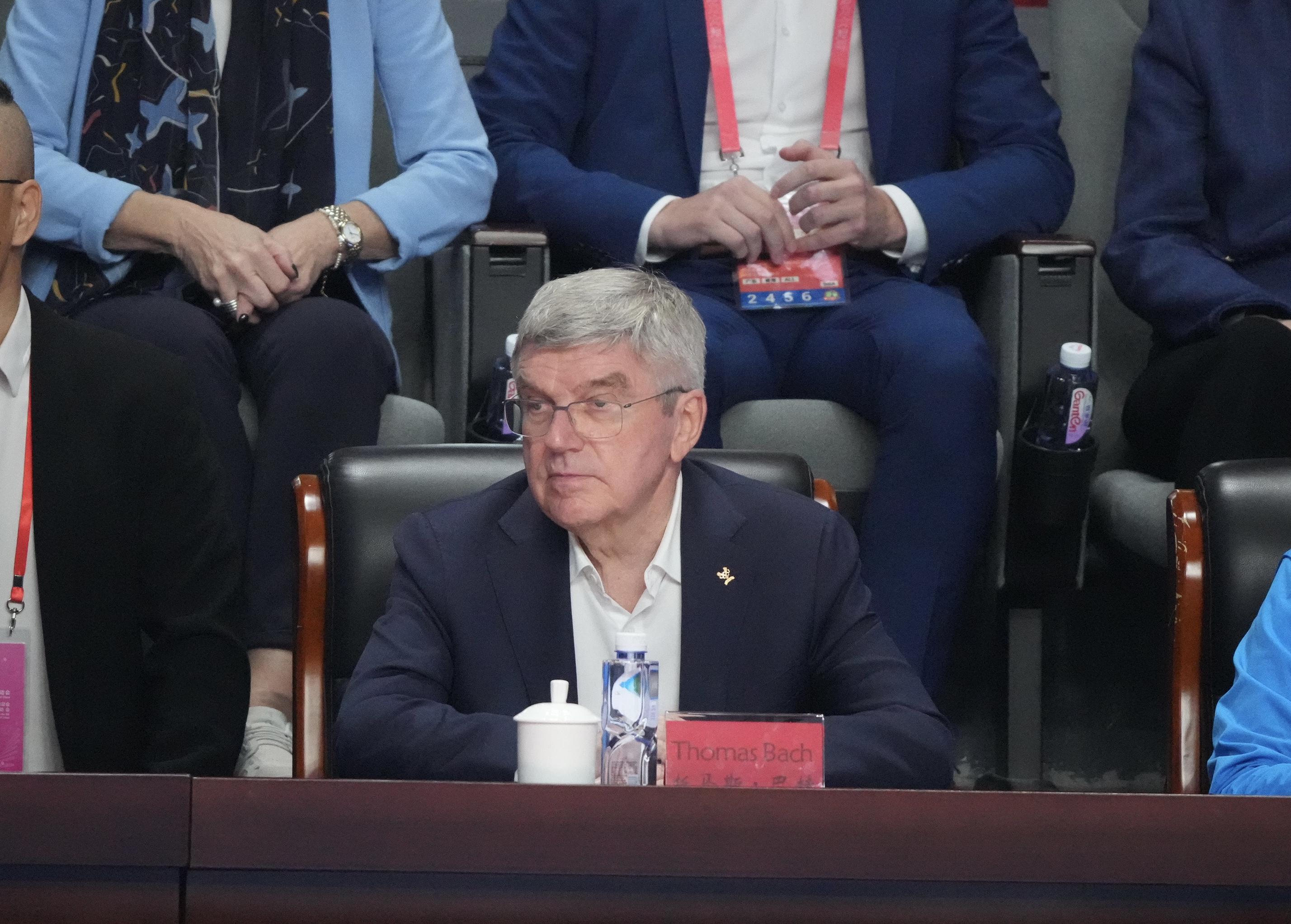 11日晚,肇庆四会市体育中心体育馆内人声鼎沸,当晚这里决出4枚柔道金牌。就在这喧闹氛围中,巴赫一行悄然入场落座。现场观众发现后给予了热情的掌声和欢呼声。
